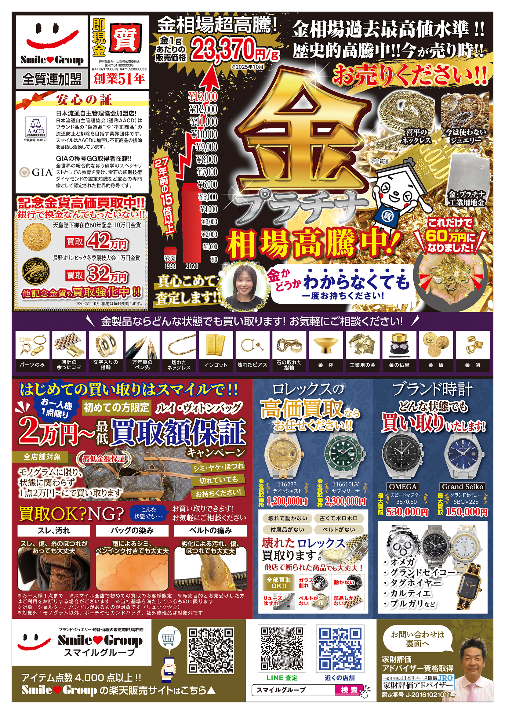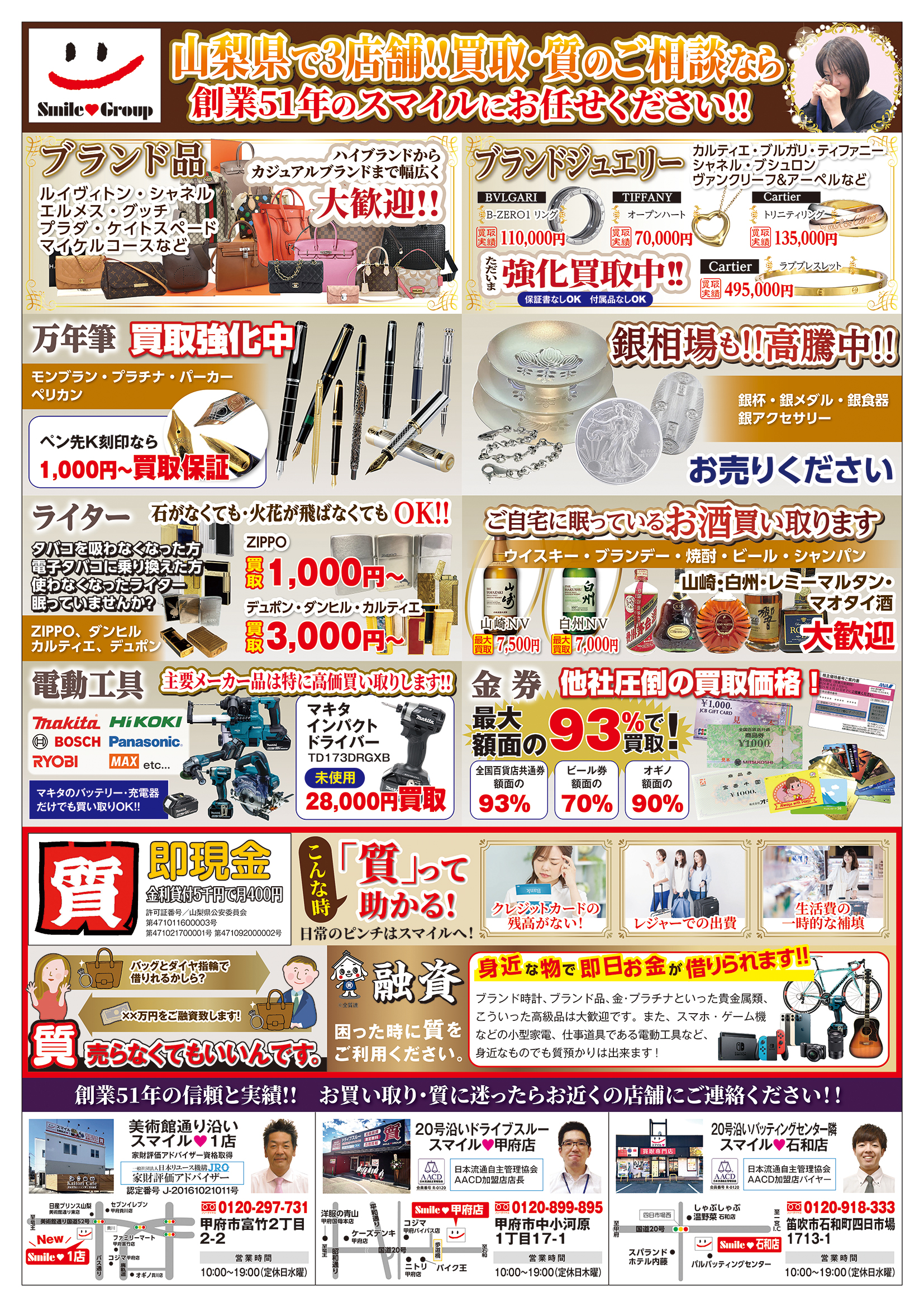 ということで 買取り&質店のスマイルワンの最新チラシのご案内です。